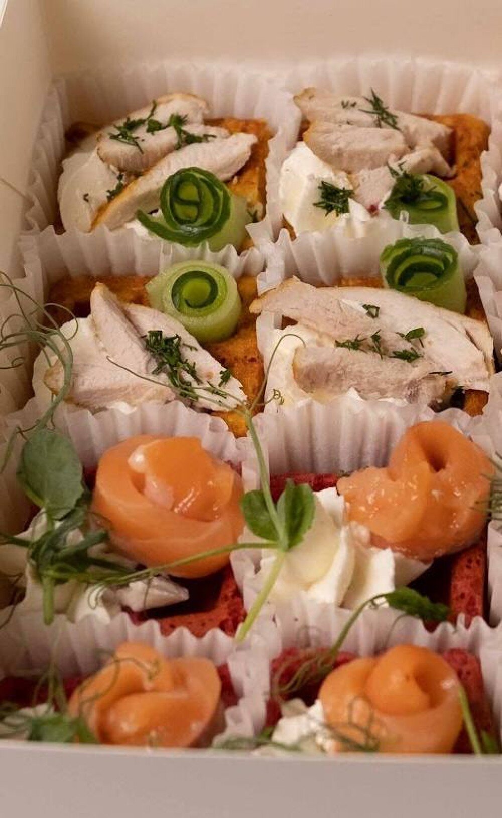 Сет тыквенных вафель с курицей су-вид и каперсами