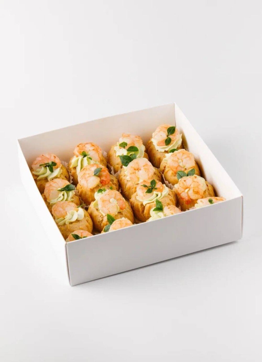 Сет из профитролей с муссом авокадо и королевской креветкой
