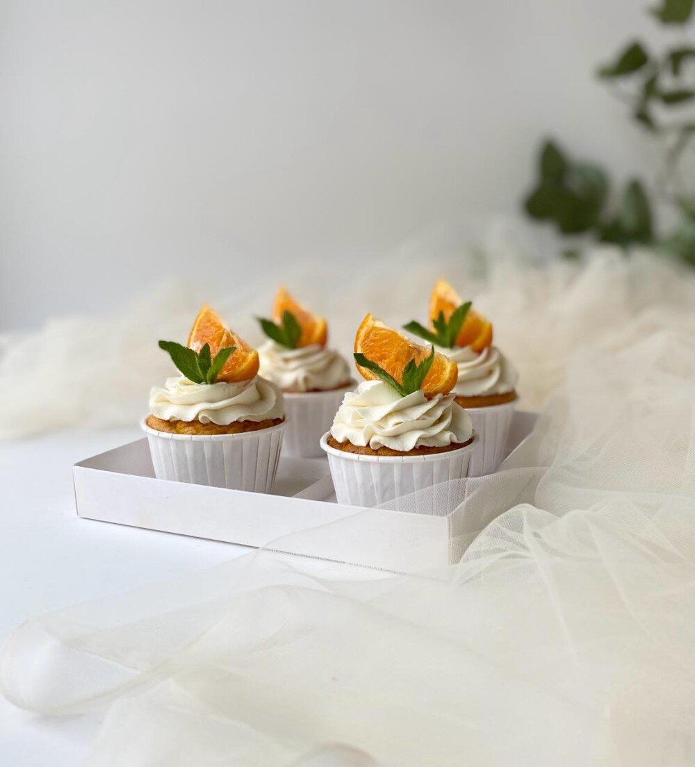 Набор из 4-х капкейков в подарочной упаковке с атласной лентой. По желанию можем добавить открытку с вашими пожеланиями