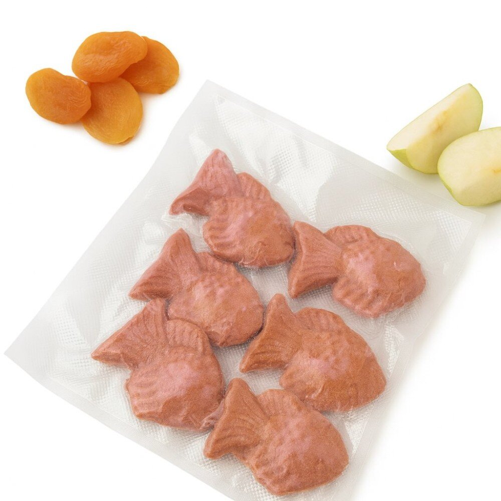 Состав теста: мука пшеничная, молоко коровье 2,5%, сахар тростниковый, соль, яйцо куриное, разрыхлитель, натуральный краситель – кармин. Состав начинки: яблоко, курага, тростниковый сахар, молотая корица
