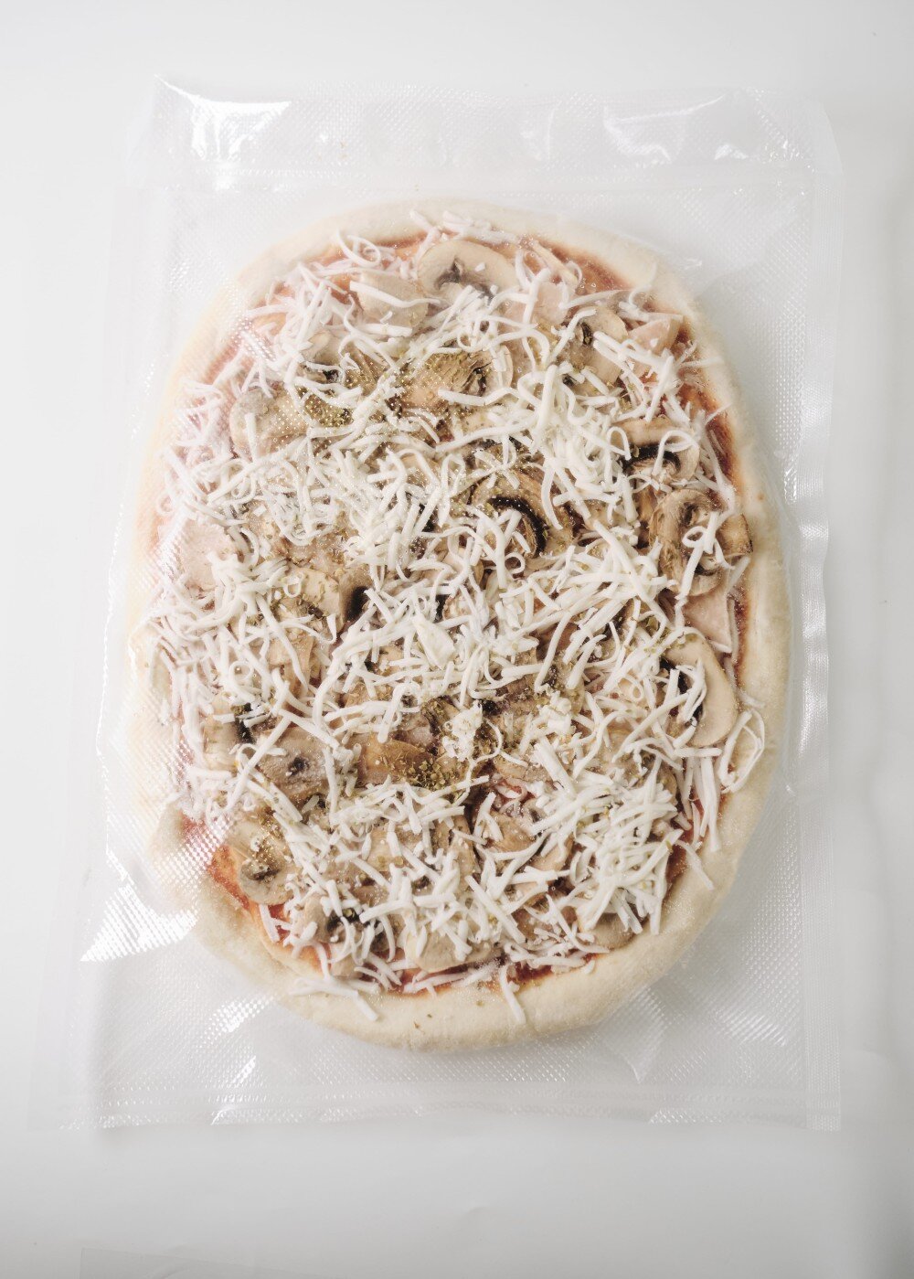 Состав теста: мука пшеничная, сахар тростниковый, сухие дрожжи, вода, масло растительное (оливковое), соль Состав начинки: томатный соус (томаты в собственном соку пр-во Италия, соль, сахар тростниковый, соль, орегано, масло оливковое), сыр моцарелла, пряная курица су-вид, шампиньоны свежие