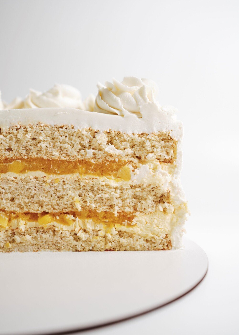 Яйцо куриное, миндальная мука, рисовая мука, молоко коровье, масло растительное, разрыхлитель, лимонный сок, пюре манго, пюре маракуйи, пектин, сыр творожный, подсластитель Prebiosweet Fitness, сливки 33%