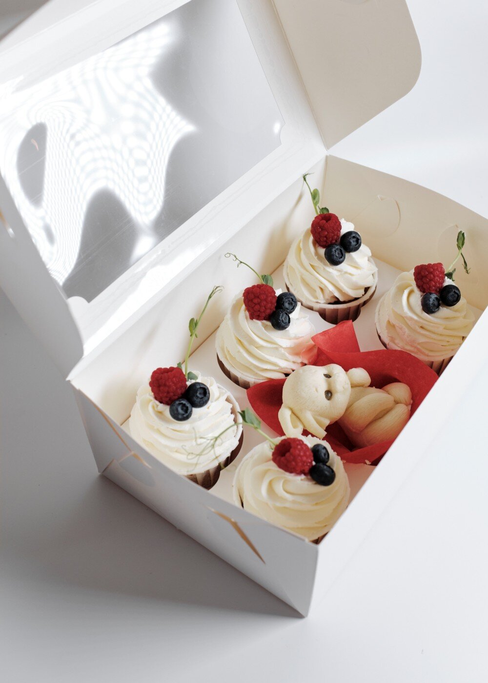 Набор из 6 капкейков в подарочной упаковке с атласной лентой без сахара, без глютена
