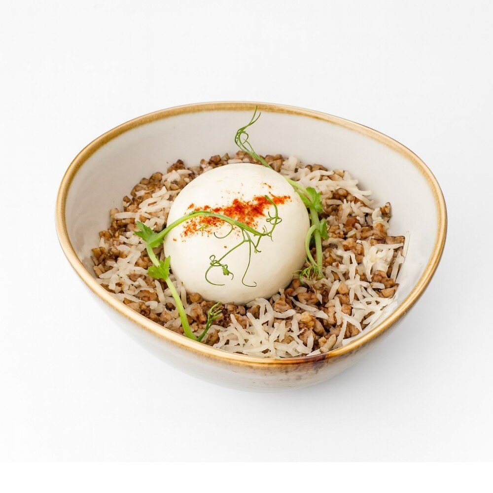 Гречка, пармезан, яйцо-пашот, масло