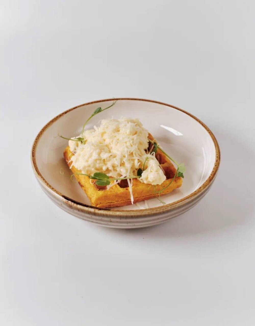 Без глютена. Нежный скрэмбл из двух яиц, пармезан.